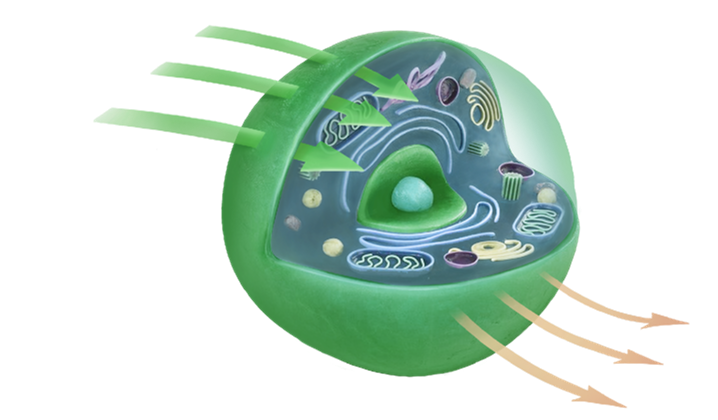 Na této fyzické úrovni je třeba se zamýšlet nad tím, jak buňka pracuje a co ji dělá dobře. Každá buňka má své vnitřní a vnější prostředí. Buňka vyživuje své vnitřní prostředí z vnějšího a vylučuje odpad z vnitřního do vnějšího prostředí. Každá buňka má obal, obal buňky se nazývá buněčná membrána. Něco jako obvodové zdi vašeho dom. Tak jako...