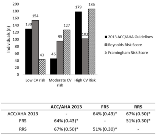 Výsledky: Celkový cholesterol inverzně koreloval s membránami erytrocytů C18:3 n-3 (r = -0,155; p = 0,004), C22:6 n-3 (r = -0,112; p = 0,041) a celkovými n-3 (r = -0,211; p < 0,001). Celkový obsah n-3 PUFA byl spojen s nižším kardiovaskulárním rizikem podle FRS (OR = 0,811; 95% CI = 0,675-0,976). Pokud jde o RRS, faktor 3 byl spojen s 25,3% nižší pravděpodobností středního a vysokého kardiovaskulárního rizika (OR = 0,747; 95% CI = 0,589-0,948). Rizikové skóre ACC/AHA-2013 nebylo spojeno s izolovaným a sdruženým FA.